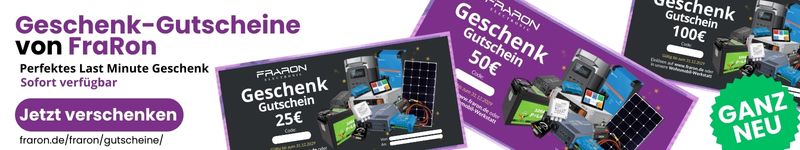 Der Geschenkgutschein gilt für alle Produkte in unserem Online-Shop (auch bereits reduzierte Artikel), hier vor Ort sowie für Leistungen in unserer FraRon electronic Wohnmobil-Werkstatt.